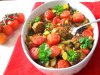 В фарш добавить яйца, выдавленный через пресс чеснок, посолить, поперчить, добавить немного воды и хорошо вымешать. Сделать маленькие фрикадельки, не больше грецкого ореха, обвалять их в муке и обжарить в масле со всех сторон до светло – коричневого цвета. Залить фрикадельки соусом, поперчить, положить оливки, если нужно – то посолить и долить немного воды. Фрикадельки должны полностью покрыться соусом. Тушить на медленном огне под закрытой крышкой минут 30.