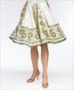 Затем необходимо провести из правого верхнего угла получившегося квадрата малый радиус, который определяется путём деления объёма талии на коэффициент 6,3. Таким способом мы получим линию талии. Для получения линии нижнего края юбки из этого же угла проводим при помощи шнура и карандаша большой радиус, который определяется как сумма малого радиуса и длины юбки. Можно использовать другой способ, который заключается в откладывании от линии талии радиальных линий по длине юбки, а затем получившиеся метки соединяются по дуге плавной линией. После этого выкройка полотнища юбки вырезается и раскладывается в один слой. Эта выкройка соответствует одному полотнищу юбки заднему или переднему.