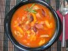 Что понадобится: подкопченные колбаски или сосиски – 500 грамм, два помидора, четыре болгарских перца (желательно разных цветов), растительное масло, две крупные луковицы, столовая ложка томатной пасты. Из приправ и специй составляйте свой букет, в этом рецепте используется перец, мята, орегано и тмин.