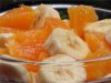 Бананы нарезаем колечками, персик дольками, сливки дольками. Виноград режем, если он крупный. Вообще, фрукты для фруктовых салатов нарезаются средне или крупными кусочками. Мелко их не нарезают, потому что фрукты тогда быстро пустят сок.
