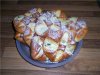 Ингредиенты для теста: 100 грамм творога (лучше взять пастообразный, но не жидкий), по 50 грамм сметаны и натурального йогурта, один желток, пакетик разрыхлителя, муки 300 – 350 грамм, по 75 грамм растительного масла и сахара, две столовых ложки лимонного сока, столовая ложка лимонной цедры, ванилин, чуть соли.