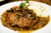 Кролик тушёный в сметане подаём к столу в горячем виде.