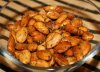 По истечении шести часов, орехи необходимо вынуть из мёда, выложить их в миску и обсыпать сахаром (обильно).