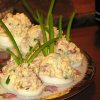 Полностью повторяете сырно-чесночную начинку, с тем лишь изменением, что в нее нужно еще потереть на мелкой терке вареное яйцо. Очень вкусный вариант начинки.