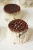 Минут через тридцать - сорок достаём нашу массу из холодильника и выкладываем горкой на каждое печенье. Ножом делаем красивую и ровную форму десерту. Украсить чизкейк можно ягодами, можно изюмом.