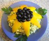 Украсить блюдо листочками салата, выложить на них филе рыбы, залить майонезом и расположить вокруг овощной салат.