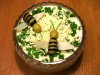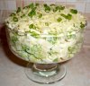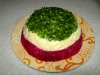Отварить картофель, морковь и свеклу, охладить, очистить от кожуры, и нарезать кубиками. Добавить в измельченный зеленый лук, массу посолить, добавить майонез и тщательно перемешать.