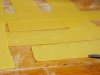 Просейте муку на разделочную доску. Сделайте в центре получившейся горки углубление и вбейте в нее яйцо/яйца. Затем, добавьте соль, воду, молоко, масло (все, что указано в рецептуре), и очень аккуратно, прихватывая понемногу муку с бочков, начните замешивать тесто.