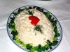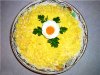 В салатник выложить слой рыбы, на нее – зеленый лук, смазать майонезом. Натертый картофель (его присолить), слой майонеза, слой тертых яиц и снова слой майонеза. Верх салата украсить мелко рубленой зеленью укропа, веточкой петрушки и разложить половинки маслин. Можно смело делать двойную порцию, салат очень вкусный и сравнительно недорогой.