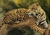 Имеет различия рисунок на шкуре животных. У ягуаров черные пятна на животе, голове и лапах сплошные, а по бокам пятна в форме «розетки», рисунок которых отличается от леопардовых. Основной фон шкуры желто-рыжих оттенков, на животе белый, уши сзади черные с белым пятном, возле рта черная полоска. Ягуар крупнее, чем леопард, более коренастый и массивный, голова крупная, ноги и хвост короче. Сильные и короткие ноги позволяют животным забираться на деревья, а мощная мускулатура совершать стремительные броски.