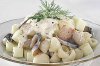Итак, нам потребуются: баночка консервированного лосося, одна картошина, одно яйцо, одно яблоко, майонез и маленькая луковица.