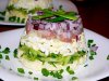 Теперь снимаем осторожно кольцо. Красивейший салат готов. Сверху украшаем его зеленью или майонезом.