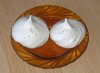 Теперь в духовке нам необходимо испечь безе. Набираем массу в кондитерский шприц и на противень, который бумагой предварительно выстилаем, выдавливаем в виде небольших комочков массу. Форма любая. Выпекаем безе до готовности.