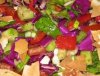 На тарелку выложить листья салата, на них – подготовленную смесь из овощей. Сверху посыпать сухариками. Салат готов. По желанию в него можно добавить маслины или лимонный сок заменить соком апельсина – получается совершенно другой вкус.