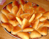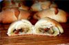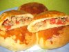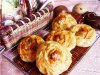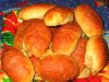 Тесто разделить на небольшие кусочки, сформировать пирожки, уложить их на смазанный маслом противень. Поставить в тепло на расстойку на 20 минут. затем смазать яйцом, ножом сделать небольшой надрез и положить в него кусочек чесночного масла. Выпекать пирожки на среднем огне 20 минут.