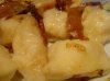 Тесто готово, теперь галушки можно варить. В кипящий суп (за 10 минут до готовности) чайной ложкой набираем тесто и опускаем в суп. Так ложку за ложкой расходуем всё тесто. Галушки всплывают на поверхность, как только полностью провариваются. Галушки имеют неровную форму. Если галушки варились просто в подсоленной воде, то их после всплытия вынимают шумовкой. Далее галушки обжаривают с колбасой или салом.