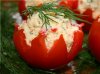 У помидор срезать верх, чайной ложечкой аккуратно выбрать серединку. Если готовите закуску на праздничный стол, сделайте фигурные зубчики по краю помидорок.