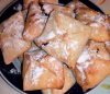 Противень застелить пергаментом, положить конвертики, смазать их яйцом. Выпекать при температуре 180 градусов 20 – 25 минут. Готовые посыпать сахарной пудрой.