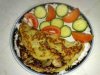 На хорошо разогретую сковородку налить масла, выложить столовую ложку теста. Обжарить пока жидкое тесто чуть схватится, положить чайную ложку начинки и сверху вылить чайную ложку теста. Перевернуть и обжарить вторую сторону. Готовые драники положить на противень и прогреть 5 – 7 минут в духовке на среднем огне. Подавать со сметаной или со шкварками.