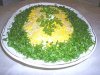 - яйца (или выкладываем белки от яиц, а сверху выкладываем желтки)