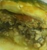 Необходимо подготовить свиной фарш, он не должен быть слишком жирным. Фарш нужно поперчить и посолить. Форму для запекания промазать маслом растительным, выложить на дно ее фарш и разровнять. Репчатый лук надо почистить и порезать полукольцами, затем разложить поверх фарша. Картофель очистить и порезать тонкими кружочками, которые нужно разложить поверх лука. Сверху картофель нужно присыпать специями. После этого разложить нарезанные на кружочки кабачки. Кабачки нужно почистить от кожуры.