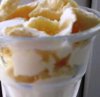 Оставшиеся сливки нужно взбить с добавление одной чайной ложки сахара-песка. Затем покрыть крем сверху взбитыми сливками при помощи кондитерского мешка. Можно также украсить вишней. Затем поставить на холод, примерно на пару часов.
