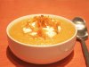Приготовление: сначала чистят и отваривают тыкву, из отваренной мякоти готовят пюре. Затем в большую кастрюлю кладут сливочное масло и на маленьком огне растапливают его. Лук мелко нарезают, кладут в растопленное масло и пассируют до золотистости. Затем в кастрюлю вливают бульон, добавляют пюре из тыквы, доводят до кипения и убавляют огонь. Затем все тщательно перемешивают, добавляют сливки, кукурузную муку, специи и сахар. Пять-семь минут варят. В тарелку с супом кладут много натертого пармезана, подают горячим.