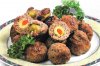 Петрушку помыть, подсушить и мелко нарезать, положить на поднос. Из фарша сделать небольшие, величиной с грецкий орех, шарики, положить их на поднос, встряхнуть, чтобы петрушка прилипла к шарикам.