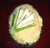 Помидоры в салате солить не нужно, иначе они размокнут, пустят сок, салат будет водянистым, слои пропитаются не майонезом, а соком от помидор. Если помидоры твердые, колечки хорошо держат форму, можно такой салат сделать порционным на кружочках помидоров и подать как закуску на листьях зеленого салата.