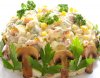 Для украшения салата нужно один – два сладких болгарских перца и горсть маслин.