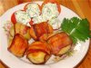 Окорочок натереть смесью из соли и специй, можно добавить выдавленный через чесночницу чеснок. оставить минут на десять мариноваться. Нарезать помидор кружочками, лук – кольцами. На кусок фольги уложить полоски бекона, на них - курицу, закрыть сверху беконом, разложить кружочки помидоров и лук. Полить майонезом (немного, сделать сеточку), завернуть края фольги. Запекать в духовке на среднем огне минут сорок – сорок пять. Если нужно подрумянить блюдо, минут за пятнадцать до окончания приготовления переставьте противень на верх, фольгу раскройте. Но при таком приготовлении испарится очень вкусный соус, так что выбирайте компромисс.
