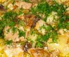 Необходимо лук почистить и порезать мелкими кубиками. Шампиньоны промыть, почистить и порезать пластинками. Можно взять готовые нарезанные замороженные шампиньоны.