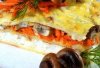 После этого надо подготовить форму с высокими бортами. Отдельно нужно очистить грибы и порезать их пластиночками. Затем слегка обжарить на сковородке, нужно добавить масло оливковое.