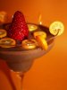 4. К клубничному пюре добавить коньяк, затем соединить массу со взбитыми желтками. Распущенный на небольшом огне желатин добавить в крем. Массу охладить.