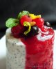 6. Блюдо можно подавать, выложив его в креманки и украсив разрезанными пополам оставшимися ягодами клубники, сахарной пудрой и корицей.