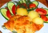 Готовую рыбку можно нарезать пластами и выложить на тарелочку, украсить лимоном и оливками.