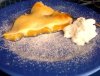 Выкладываем на противень наш полуфабрикат десерта (тесто с грушей). Готовится десерт при температуре плюс двести. Минут двадцать.