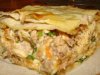 Берем примерно полтора лаваша и выстилаем им дно формы, что обязательно края свисали. Остальной лаваш надо порвать на куски и макать в начинку, затем класть в форму для выпечки лаваша. Таким образом, весь лаваш и начинка должны быть уложены в форму для лаваша.