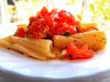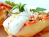 Небольшие формочки или чашечки застелить фольгой или пищевой пленкой. С помидор снять кожицу и нарезать мякоть тонкими кольцами. Так же тонко нарезать брынзу. По размеру кружочки помидоров и брынзы не должны сильно отличаться.