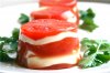 В томатный сок добавить любимые специи, соль. Залить соком желатин. Затем на водяной бане распустить желатин в томатном соке. Кружочки помидор и брынзы обмакивать в сок и укладывать поочередно в формы. Оставшийся томатный сок разлить по формам с помидорами и брынзой, поставить их на несколько часов в холодильник. Перед подачей к столу опустить формы в горячую воду, снять пленку и нарезать закуску ломтиками.