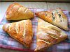 Для начинки сыры натереть на терке, брынзу размять вилкой или тоже натереть. Смешать с творогом, маслинами, мелко нарезанной зеленью. Добавить яйцо, соль, перец, перемешать.