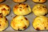 Вилочкой или толкушкой растереть творог. Муку просеять и соединить с разрыхлителем. Яйцо разделить на желток и белок, растереть желток с сахаром, белок венчиком или миксером взбить в крепкую пену. Смешать творог с желтком, затем осторожно вмешать белок. После этого по частям добавлять муку с разрыхлителем. В конце добавить нарезанную маленькими кусочками курагу, изюм или финики.
