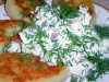 Чеснок пропустить через пресс. Сливки со щепоткой сахара взбить до устойчивых пиков, затем смешать с майонезом, подсолить. Перемешивать соус нужно осторожно, чтобы он не опал. Специй добавлять минимальное количество, чеснок и майонез отдадут соусу свои вкусы. Готовый картофель посыпать рубленой зеленью, соус подавать в отдельном салатнике.