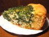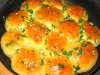 Охлажденное тесто выложить на посыпанный мукой стол, раскатать в прямоугольный пласт (не очень тонкий). Равномерно разложить начинку, свернуть тесто рулетом по длинной стороне. Нарезать на небольшие кусочки (из этого количества теста получается 12 – 14 булочек). Выложить булочки на застеленный пергаментом противень, смазать смесью из желтка и молотка, посыпать тертым сыром. Выпекать до золотистого цвета в разогретой до 220 градусов духовке 20 – 25 минут.