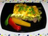К белкам добавить муку, соль и перец и хорошо взбить миксером чтобы мука полностью смешалась с белками. Туда нарезать маслины, мелко нарезанную зелень, остывшие помидоры, кукурузу. Все перемешать и выложить в смазанную маслом форму. Запекать в разогретой духовке при температуре 200 градусов 5 – 7 минут. Достать, посыпать тертым сыром и вернуть в духовку. Запекать до готовности, до образования золотистой корочки. Готовность можно проверить деревянной шпажкой. Яичница получается слоеная, тяжелые ингредиенты опускаются на дно, а взбитые белки поднимаются наверх. Вкусно как в холодном, так и в горячем виде.