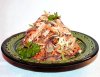 Лук режем тоненькими полукольцами. Свеклу трем на терке. Дайкон трем на обыкновенной крупной терке или натираем соломкой. Огурчики режем тонкой длинной соломкой. Чеснок выдавить через пресс, мелко нарезать зелень и смешать с овощами. Посолить, приправить острым перцем, полить уксусом и перемешать. В сковородке раскалить растительное масло и сразу же горячим вылить на салат. Дать салату немного настояться и можно подавать к столу.