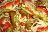 Для приготовления заправки смешать горчицу с сахаром, солью, лимонным соком. Добавить уксус, перец, влить растительное масло. Все хорошо взбить миксером.