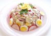 Салат можно сделать в большом салатнике, просто перемешать все ингредиенты и полить заправкой. Или же разложить в порционные креманки, салатники слоями. Вниз выкладывается зеленый лук, затем картофель, селедка, огурцы и помидоры. Щедро полить салат заправкой, украсить зеленью укропа, долькой вареного яйца. Для особо торжественной подачи можно положить сверху ложечку икры. Но и без особых изысков салат получается вкусным и нарядным.