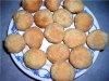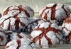 Маргарин растопить и остудить до комнатной температуры. Взбить венчиком яйца с сахаром. Просеять муку и крахмал, смешать между собой, добавить разрыхлитель. Соединить маргарин с яйцами и сахаром, всыпать крахмальную смесь, быстро замесить довольно крутое тесто. Сформировать из теста шар, завернуть в пищевую пленку, убрать в холодильник на полчаса – час.