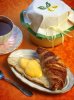 Желток тщательно размешиваем с сахаром. Масса должна получиться светлая и естественно однородная. Сливки необходимо будет предварительно подогреть (но не кипятить), затем влить их струйкою в желток с сахаром. И постоянно помешиваем,что масса стала однородной и без комочков и "творожистых" соединений.